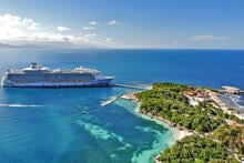 Passengers were not permitted off the 226,838 gross ton vessel while it offloaded relief supplies. The operational and humanitarian supplies stop highlights the cruise line's support of its private destination during the ongoing crisis.