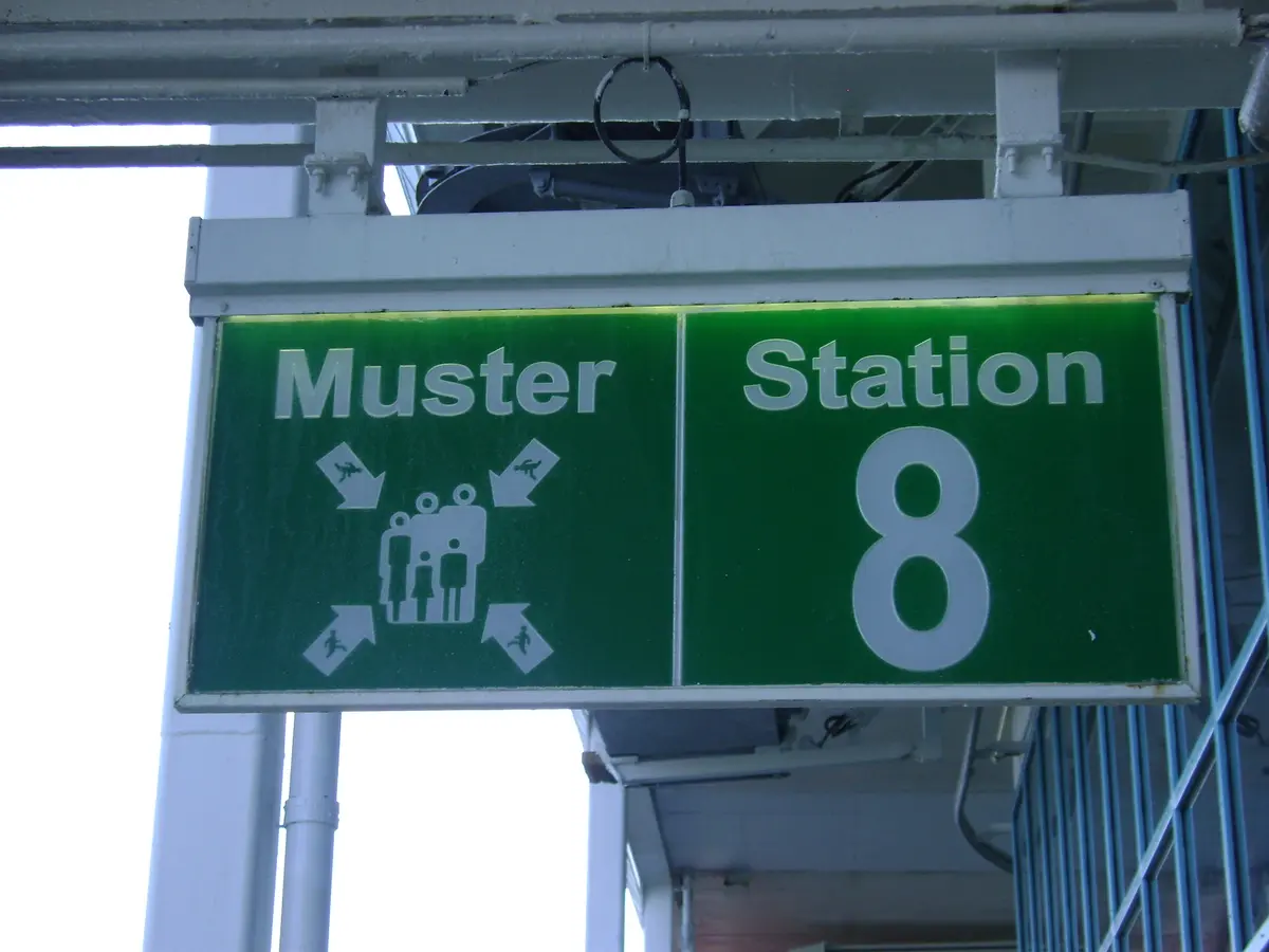 Finally, you locate your muster station and report there to check-in with a crew member.
