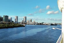 However, one positive aspect of sailing out of this port is that we had a beautiful view of downtown Tampa, the water, and the palm trees as we waited.