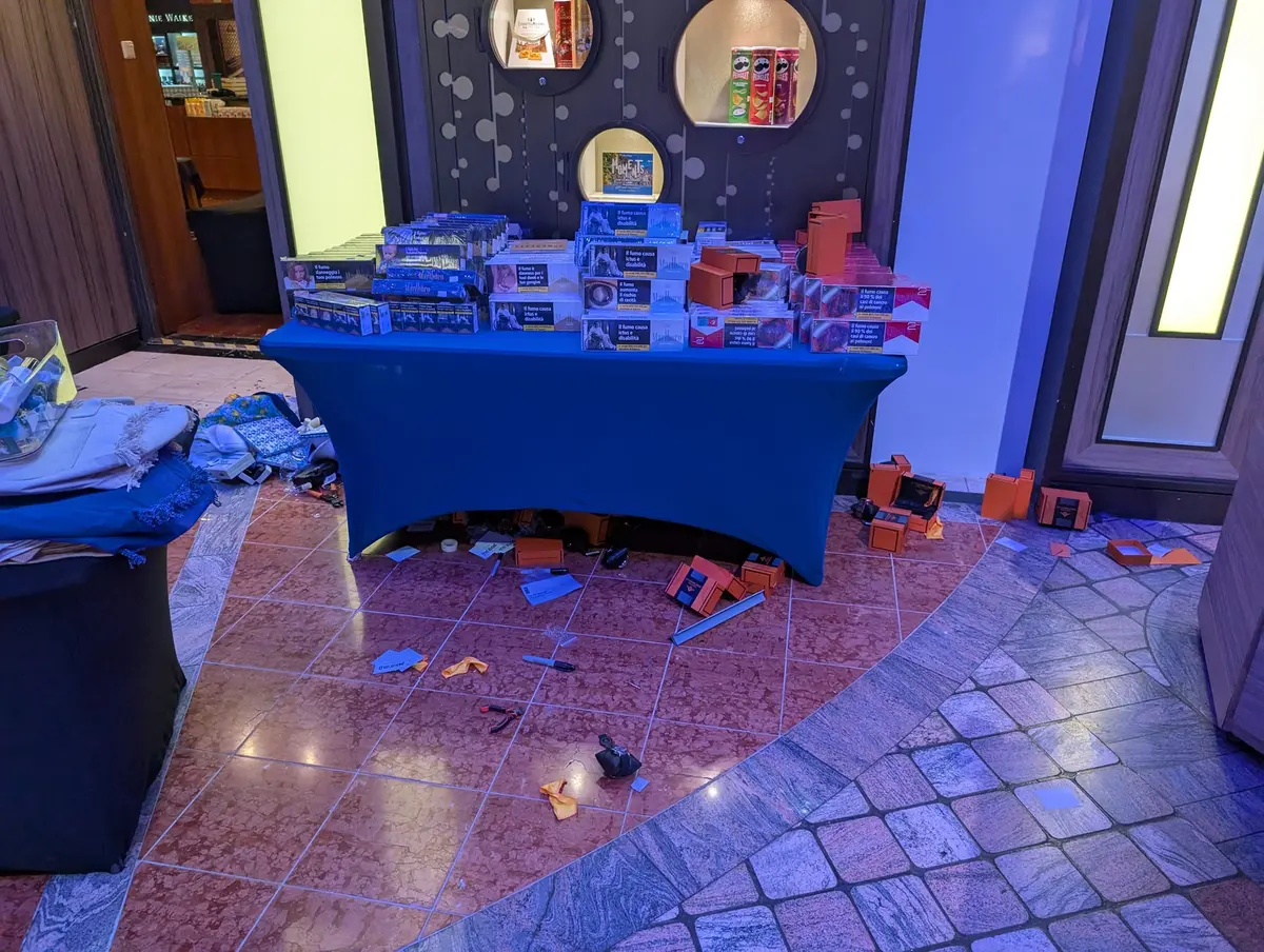 Because the squall struck later in the evening, the Royal Promenade was filled with items for guests to shop, as is common on cruise ships. This likely caused more of a mess, as much of the merchandise was out for display.