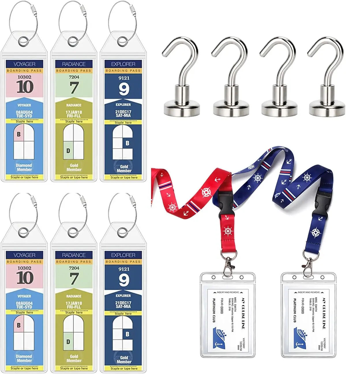 This is the ultimate cruise-essentials purchase with luggage tag holders, lanyards, and magnetic hooks! Most cruisers describe these cruise accessories as very useful for their vacation. To start, magnetic hooks can be used in your Royal Caribbean cabin, as the walls are usually magnetic. These hooks allow you to hang small items directly on your wall, which can save space and keep your cabin organized.