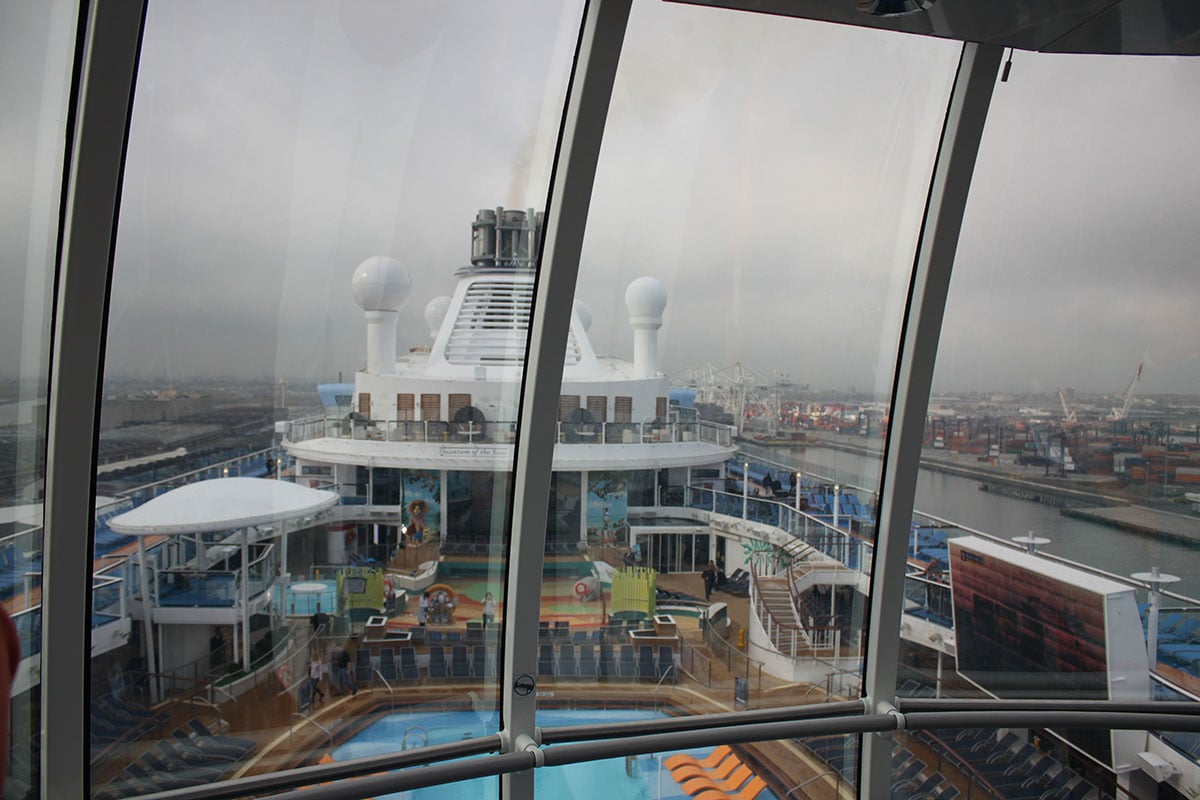 Once the doors close, North Star will begin to ascend, giving you a wide view of your ship as well as the area around you. The North Star pod is attached to a 135 foot arm that can extend up to an 80-degree angle and move around. When the ship is in port, the arm only goes up and down due to local laws and will not move over the side of the ship. While this limits the views somewhat, it does make for quicker ride experiences, which is good if you are waiting in line.