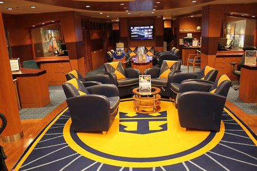 Now that Royal Caribbean has moved the NextCruise operations down to the Royal Promenade on Freedom of the Seas, the Loyalty Ambassador lounge is far less busy than it used to be and those blue leather chairs are a good spot for a nice sit.