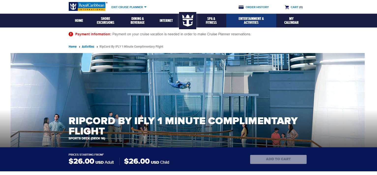 Guests on Quantum of the Seas will now be charged $20 for a ride on North Star or $26 for a 1 minute Ripcord by iFly flight.
