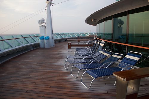 I had decided to watch sunrise on the top decks, also a must-do at least once on a cruise. I discovered a suite only deck all the way forward, and watched the sun come up there.