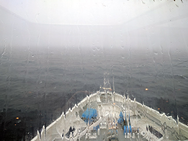 Notice by the way that the Windjammer on Empress is situated forward, where as the other ships in Royal's fleet feature the Windjammer to the aft. That rain on the glass, a nice lunch, and perhaps the four glasses of whisky I'd had left me fading fast, so we headed to the stateroom for a bit to begin packing and take a short nap.