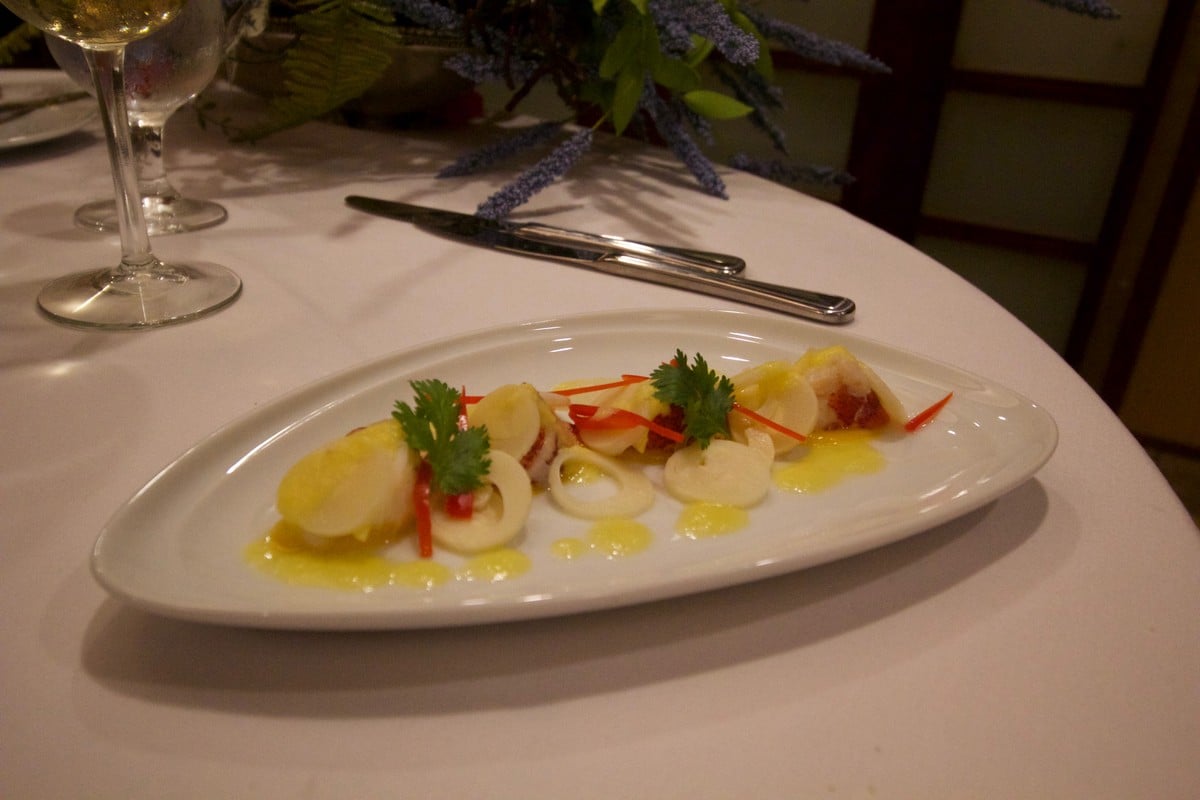 Tonight we reserved Chef’s Table, which is $85 per person. I’ve never done the Chef’s table before, so I was really looking forward to this. First we met in Boleros lounge, where they serve you a glass of Champagne. After 15 minutes, they walked us down to the room beside the main dining room for our meal.