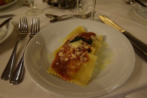 I started off with the pumpkin ravioli, which while good, had little pumpkin flavor that I could detect.