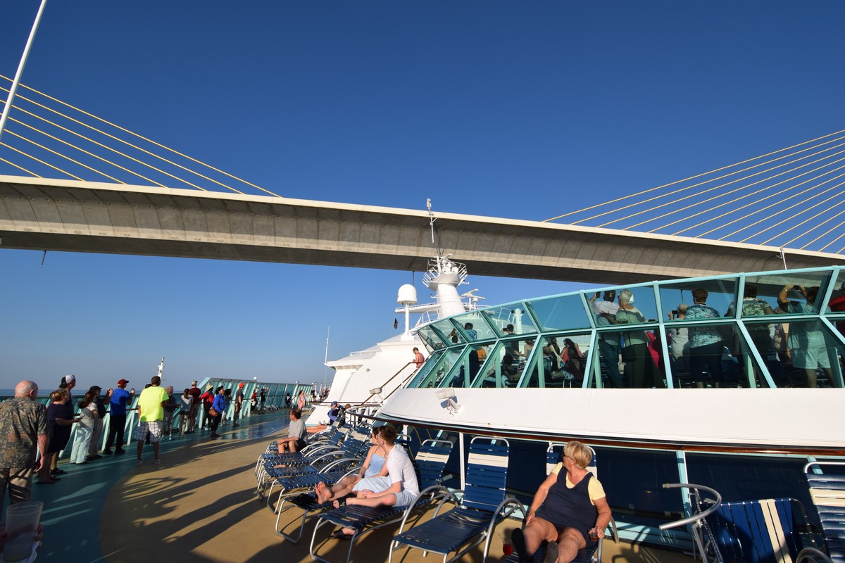 The Captain made an announcement that we were approaching the Sunshine Skyway Bridge, which marks the entrance (or in this case exist) to Tampa Bay. Sailing under a bridge is always such a fun experience, and the Captain indicated we cleared the bridge by 9 feet!