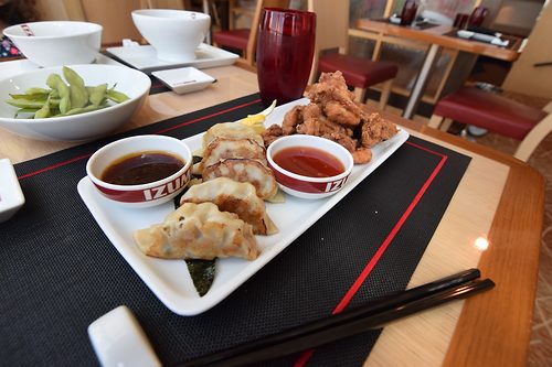 I went for a suhi-rific lunch selection, while my wife opted for chicken karage and dumplings.