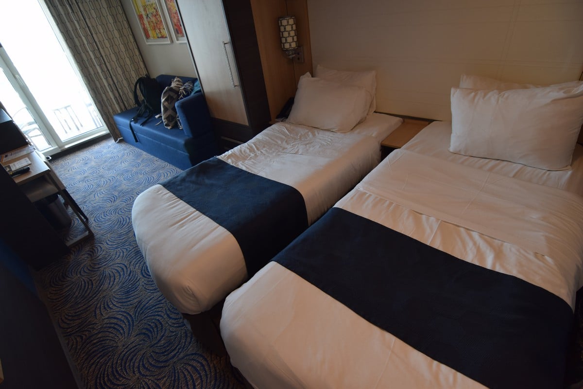The staterooms were ready at 1:30pm, and for this sailing we have two connecting balcony rooms on deck 8 aft. These are your typical balcony rooms and the best part of these rooms is all the storage space you get.