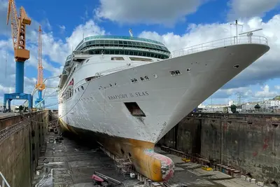 Rhapsody of the Seas is currently undergoing a drydock in Brest, France at the Damen shipyard.