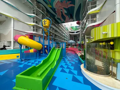 Instead of the Boardwalk found onboard Oasis Class ships, Royal Caribbean created a new neighborhood for families: Surfside. With both complimentary and specialty dining venues, an arcade, carousel, aft pool, kids' splash zone, and more, this is where families are encouraged to stay and play all day.