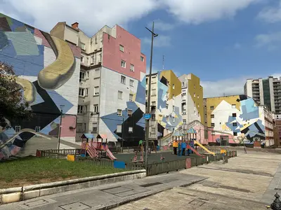 The streets in this space are covered with urban wall art, where prestigious international artists (like Trakabarraka) make their contributions.