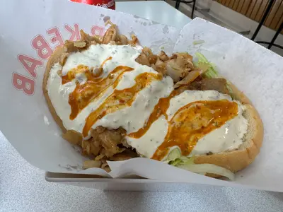 You can get it served in a few ways, but usually it's in a pita or a wrap.