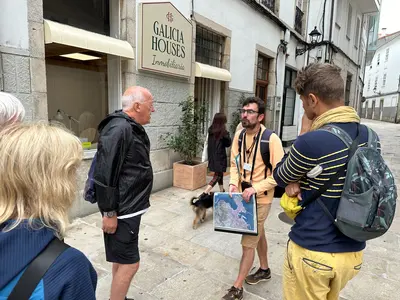 Cesar had a speaker with him, but did not need it given how small the group was. He started by explaining the significance of the plaza we were meeting at, and why there's a giant statue of María Pita. She's the heroine of the city who helped defeat an English attack in the 16th century.