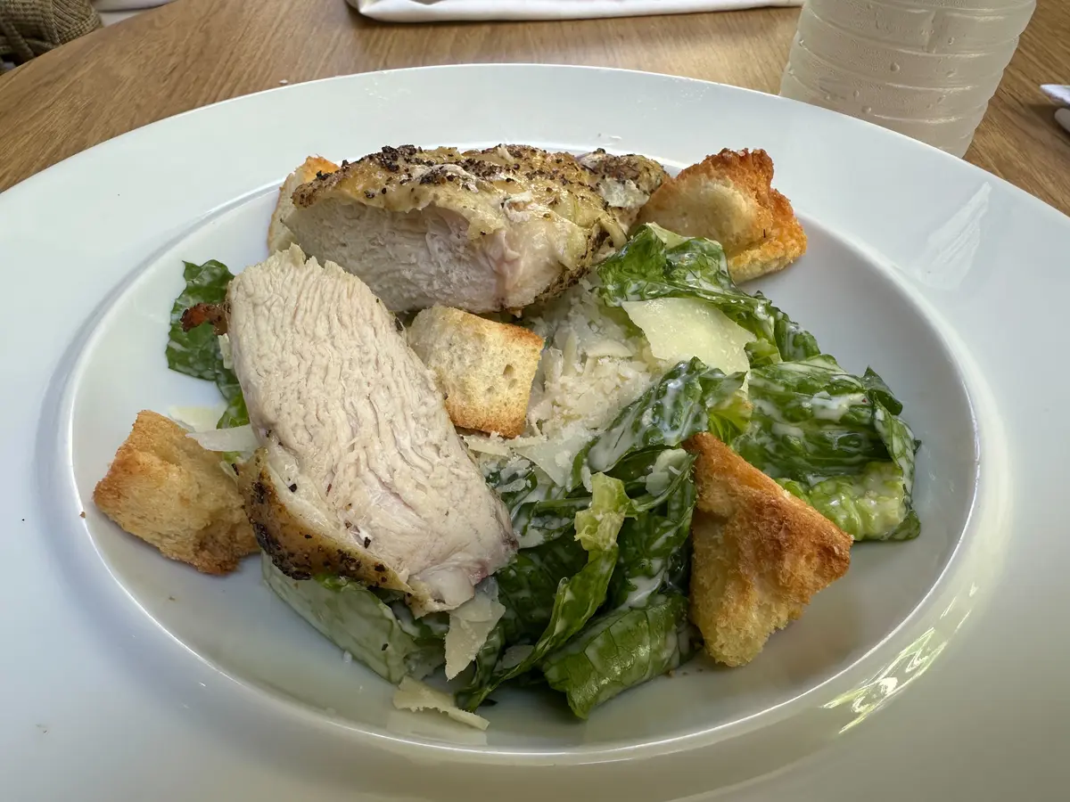 I started off with the Caesar salad and impulsively added the chicken on top of it.