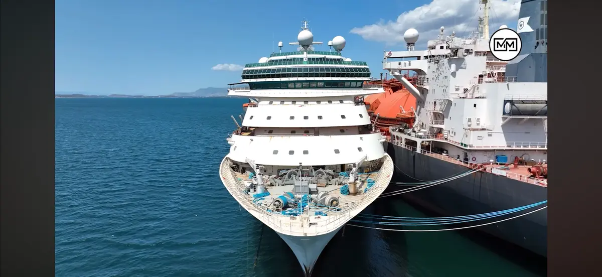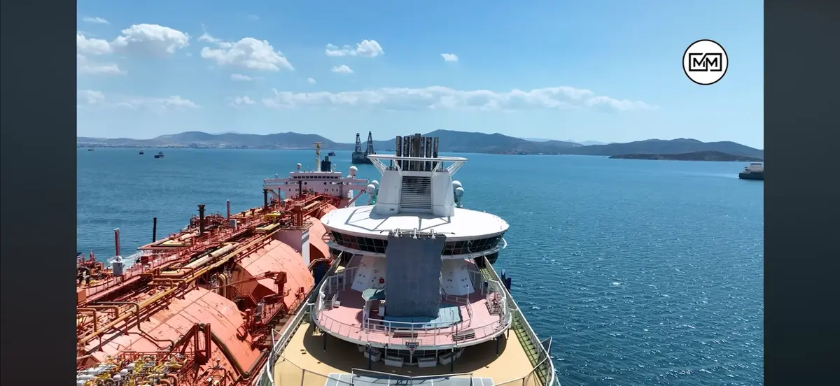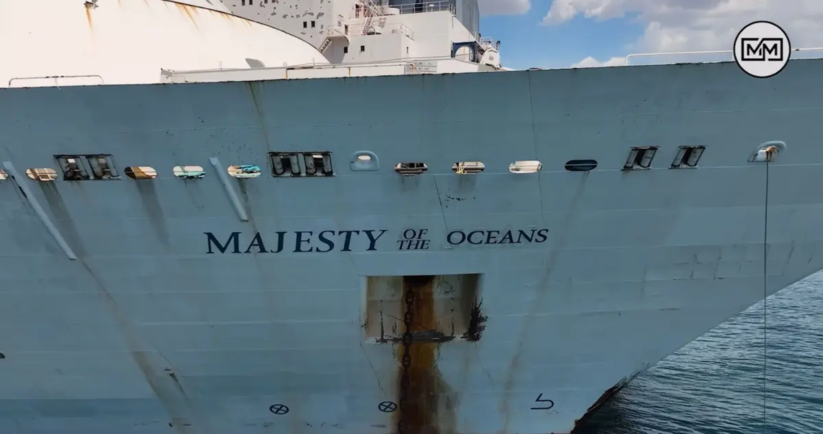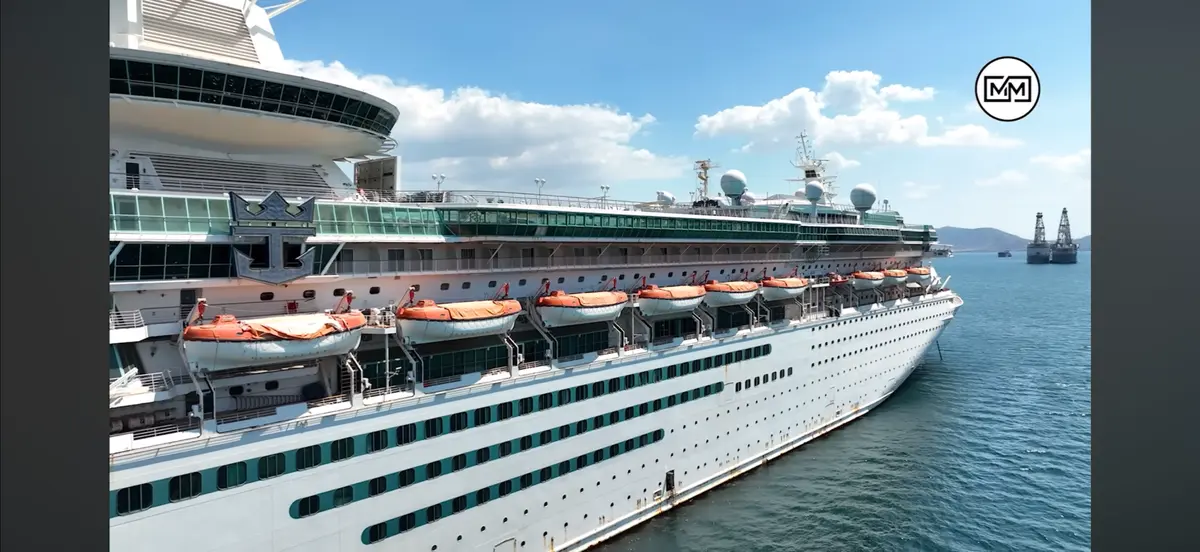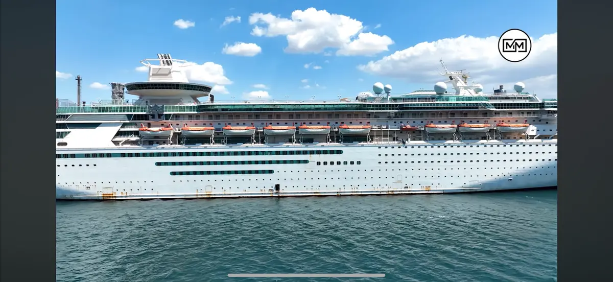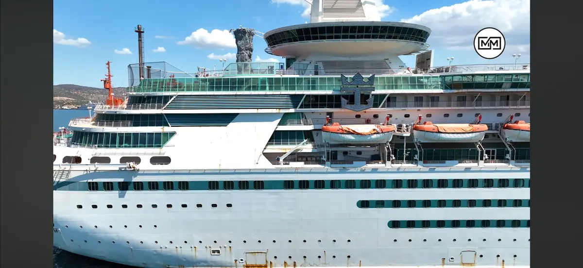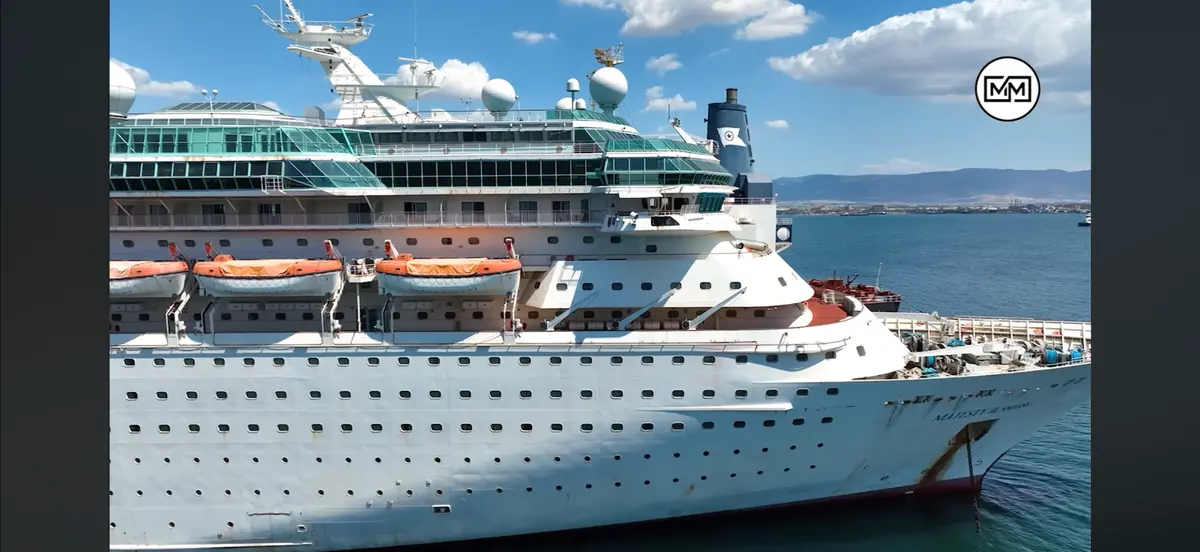 The caption of the video, which was translated from Greek, reads: “For the past five years, the cruise ship Majesty of the Oceans, formerly Majesty of the Seas, has remained anchored in Elefsis Bay, a vessel with a distinctive legacy in international cruising.”