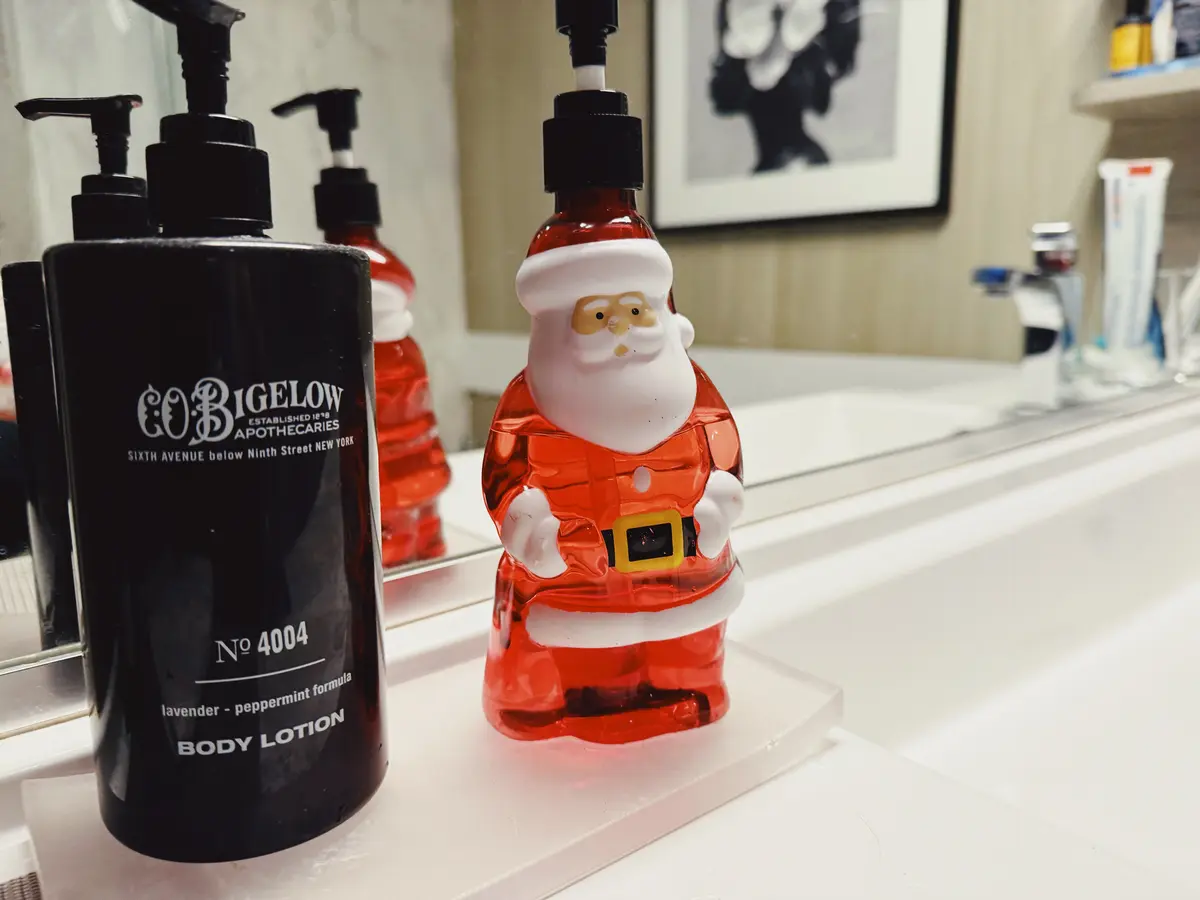 While shopping at the dollar store, I found an adorable bottle of liquid soap shaped like Santa. It was a fun change from my usual Softsoap and fit right in with the Christmas theme in our cabin. And for $1.25, it was a steal! We ended up using most of the liquid during the cruise and tossed the bottle before disembarkation.