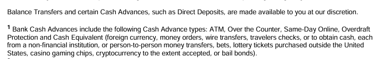 WAAAY down in the details, I found this: It doesn't say anything about purchases via a slot machine, but apparently it's going to consider the purchase of casino chips as a "cash advance"....for which they charge a 5% transaction fee....not to mention that they begin charging interest immediately on cash advances. So I think our "loophole" for getting cash at the tables is being closed. Royal has always reported casino spending as a regular "sale" but maybe they are going to categorize casino spending (at least, for "purchase of casino chips") differently. I guess we'll have to see. -