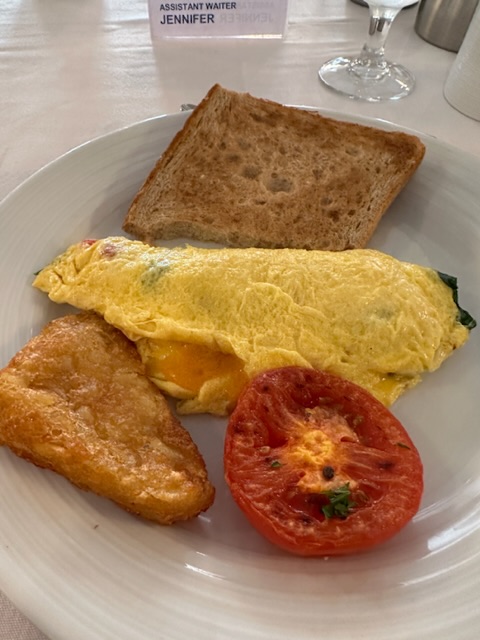 She Sails Away Posted January 31, 2023 Author Report Posted January 31, 2023 Well today I finally made it to the main dining room. And of course I'm kicking myself for not getting there sooner. I've had one excuse after the other but now I see that the good food is here. It started off a little bit awkwardly because there was a long line of people waiting to be seated for breakfast, and the host asked me if I minded sitting with another family. I said I'd rather sit alone and she pushed back pretty hard and said if we sit you alone you're gonna have to wait a while and I don't know for how long. I said OK fine I'll share and I said it as nicely as possible. She looked at the group behind me, an elderly group of four people who were listening to the conversation and who looked alarmed at the thought I might be foisted upon them. Just then, a server came up and told me to follow him and he went and sat me at a table for two in a quiet corner of the dining room filled with empty tables. So I'm not sure why there was a push for me to share a table. I got a made to order omelette with spinach, tomato and cheese, toast and a hash brown and it was super hot and fresh and just wonderful. ellcee, MaryS, WAAAYTOOO and 7 others 10 Quote