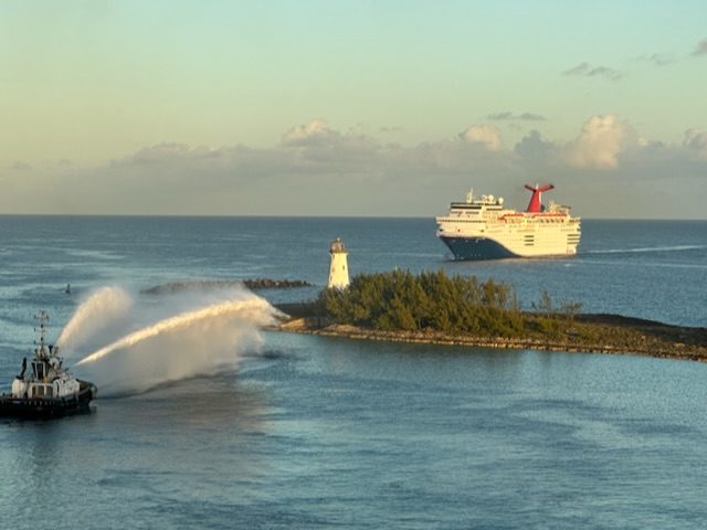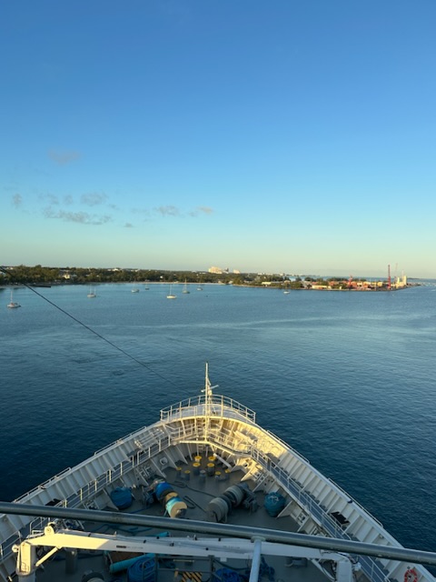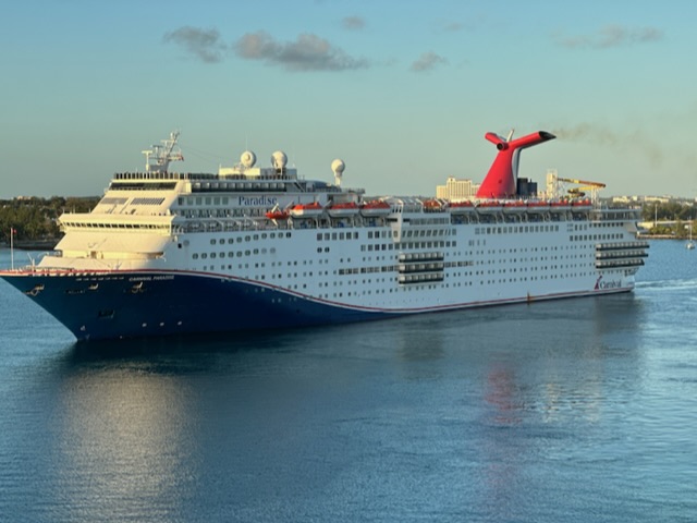 She Sails Away Posted January 31, 2023 Author Report Posted January 31, 2023 We are in Nassau this morning. We docked around 730. Carnival Paradise was docking right beside us, and we have since been joined by Navigator, the Disney Wish, and Carnival Liberty. Some people got off the ship but quite a few stayed, and the pool is being well utilized. I got in right when it opened and had it to myself for a while, then a really nice lady got in and we hung out on the side of the pool and shared cruise ship reviews. Soaked in the sun a while and it's been great but I really have to go work for a few hours now. Next challenge will be to select just the right window to sit next to. returned to the main dining room for breakfast this morning and got the same push to sit with other people even though there was no one else in line and I would have to walk up to a table already seated. Again a server came and rescued me and stuck me at a table by myself, just a two top. I looked around and counted several couples sitting at eight-tops by themselves. So either they didn't want to share tables either, or you only get asked that if you're by yourself. I'm not sure what the problem is other than maybe they don't want to take on the workload of clearing and resetting tables for just one person? And there's nothing wrong with asking me, but both times I've gotten an irritated look when I said no thank you Anyway breakfast was terrific. Swimming was great. It's been fun listening to all of the ships test out their horns as well. MaryS, Skigoofy, IRMO12HD and 3 others 6 Quote