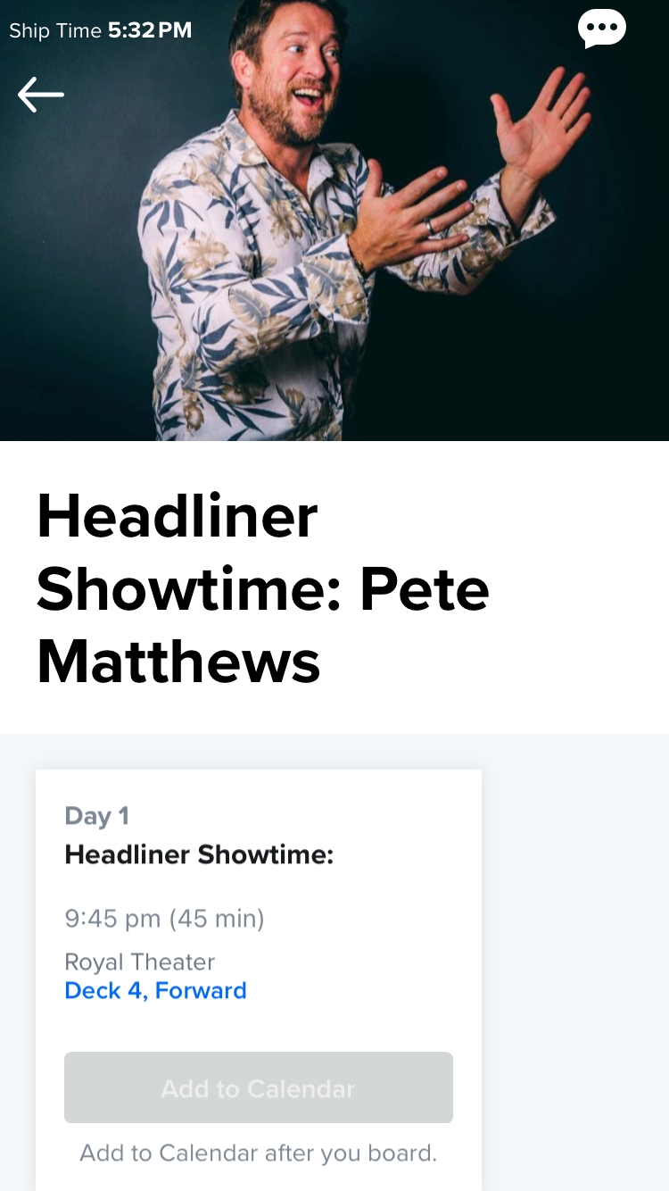 OCSC Mike Posted March 13, 2024 Author Report Posted March 13, 2024 I’ve been keeping an eye out for a headliner & this just appeared in the app sometime today. It’s the only listed day/time but the headliner has also been performing twice on day 5 so I’m guessing that will pop up eventually. With his infectious enthusiasm, rapid-fire wit and highly-skilled juggling, Pete will absolutely change your opinion of jugglers. Widely recognized as the U.K.'s premier comedy juggler, with a career spanning three decades, Pete has performed on major, prime-time TV shows, attracting audiences in the tens of millions. He has performed on the inaugural sailings of every Royal Caribbean ship for the last 10 years. Saying Pete Matthews is just another juggler is like saying London is just another city. PPPJJ-GCVAB, SweetPea, GatorCruiser and 2 others 5 Quote