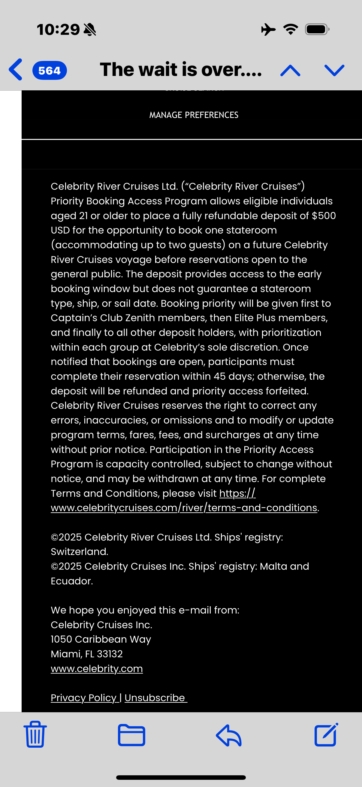 Pattycruise Posted August 19 Report Posted August 19 I received an email about when the bookings will open-priority access is September 3 and will allegedly go in order-Zenith, Elite plus then Elite…however having read it 3 times or more I’m not seeing anywhere that says how to make the $500 refundable deposit to secure a spot to potentially book. WAAAYTOOO 1 Quote